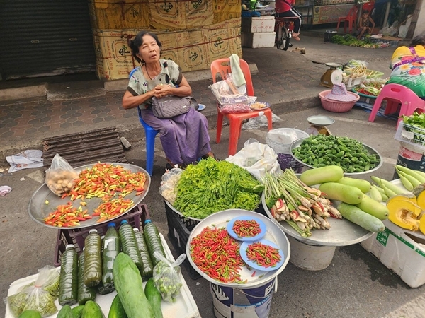 ส่วนด้านนอกจะเป็นแม่ค้าทั่วไปที่เดินทางมาจากชนบท เอาสินค้าเกษตรเช่นผักสด ผักพื้นบ้านมาวางขายกับพื้น และบริเวณนี้เป็นบริเวณที่เป็นเป้าหมายของแก๊งมิจฉาชีพ ใช้กุลยุทธหลอกล่อให้แม่ค้าให้วุ่นวายแล้วขโมยเอาทรัพย์สินของแม่ค้าไป