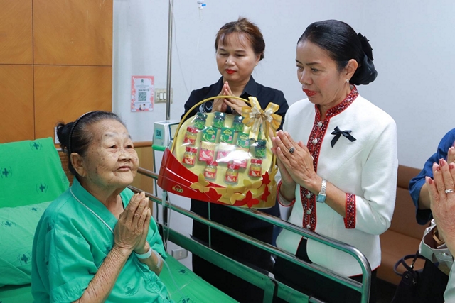 กาฬสินธุ์ กำลังใจล้นหลาม พ่อเมืองกาฬสินธุ์นำส่วนราชการเข้าเยี่ยมแม่คำสอน ศิลปินแห่งชาติ เผยข่าวดีอีก 2 วันออกโรงพยาบาล
