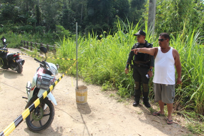 จุดเกิดเหตุเป็นถนนดินลูกรัง ด้านข้างเป็นป่าไม่มีบ้านคน อยู่ด้านหลังโรงเรียนไทยรัฐวิทยา94 ห่างไปประมาณ 200 เมตร พบ นายโกวิทย์ หวังเกิดสกุล อายุ 74 ปี อยู่บ้านเลขที่ 41/2 ม.2 ต.ตาเนาะแมเราะ สวมเสื้อเชิ้ตสีขาว กางเกงลายพรางสีเทา นอนอยู่บนถนน โดยมีรถจักรยานยนต์ ยี่ห้อ ฮอนด้า สีขาวแดง หมายเลขทะเบียน 9ขค 6865 กทม ล้มทับ มีบาดแผลถูกตีที่บริเวณศีรษะ และบริเวณลำคอมีรอยฟกช้ำ จึงรีบนำส่งตัวส่งโรงพยาบาลเบตง แต่ทนพิษบาดแผลไม่ไหวจึงเสียชีวิตในเวลาต่อมา