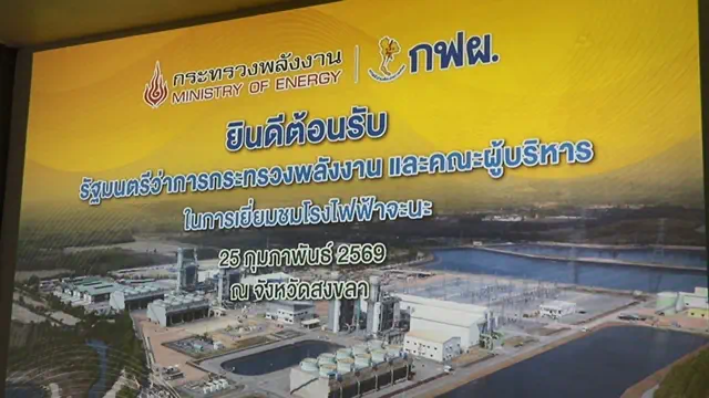 วันนี้ 25 กุมภาพันธ์ 2569 นายอรรถพล ฤกษ์พิบูลย์ รัฐมนตรีว่าการกระทรวงพลังงาน พร้อมคณะผู้บริหารกระทรวงพลังงาน ลงพื้นที่อำเภอจะนะ จังหวัดสงขลา เพื่อติดตามความคืบหน้าการซ่อมบำรุง โรงไฟฟ้าจะนะ ภายหลังได้รับผลกระทบจากเหตุอุทกภัยครั้งใหญ่ช่วงปลายเดือนพฤศจิกายน 2568 โดยมีนายสุทธิพงษ์ เฉลิมเกียรติ ผู้ช่วยผู้ว่าการผลิตไฟฟ้า การไฟฟ้าฝ่ายผลิตแห่งประเทศไทย นายจิรวัตร์ มณีโชติ รองผู้ว่าราชการจังหวัดสงขลา นายปฏิวัติ ทองเพชรจันทร์ นายอำเภอจะนะ นายจักรพันธ์ กิ่งแก้ว พลังงานจังหวัดสงขลา นายชนาธิป ชิตพงศ์ ผู้อำนวยการโรงไฟฟ้าจะนะ และหน่วยงานที่เกี่ยวข้องให้การต้อนรับพร้อมรายงานสถานการณ์และความคืบหน้าการฟื้นฟู
